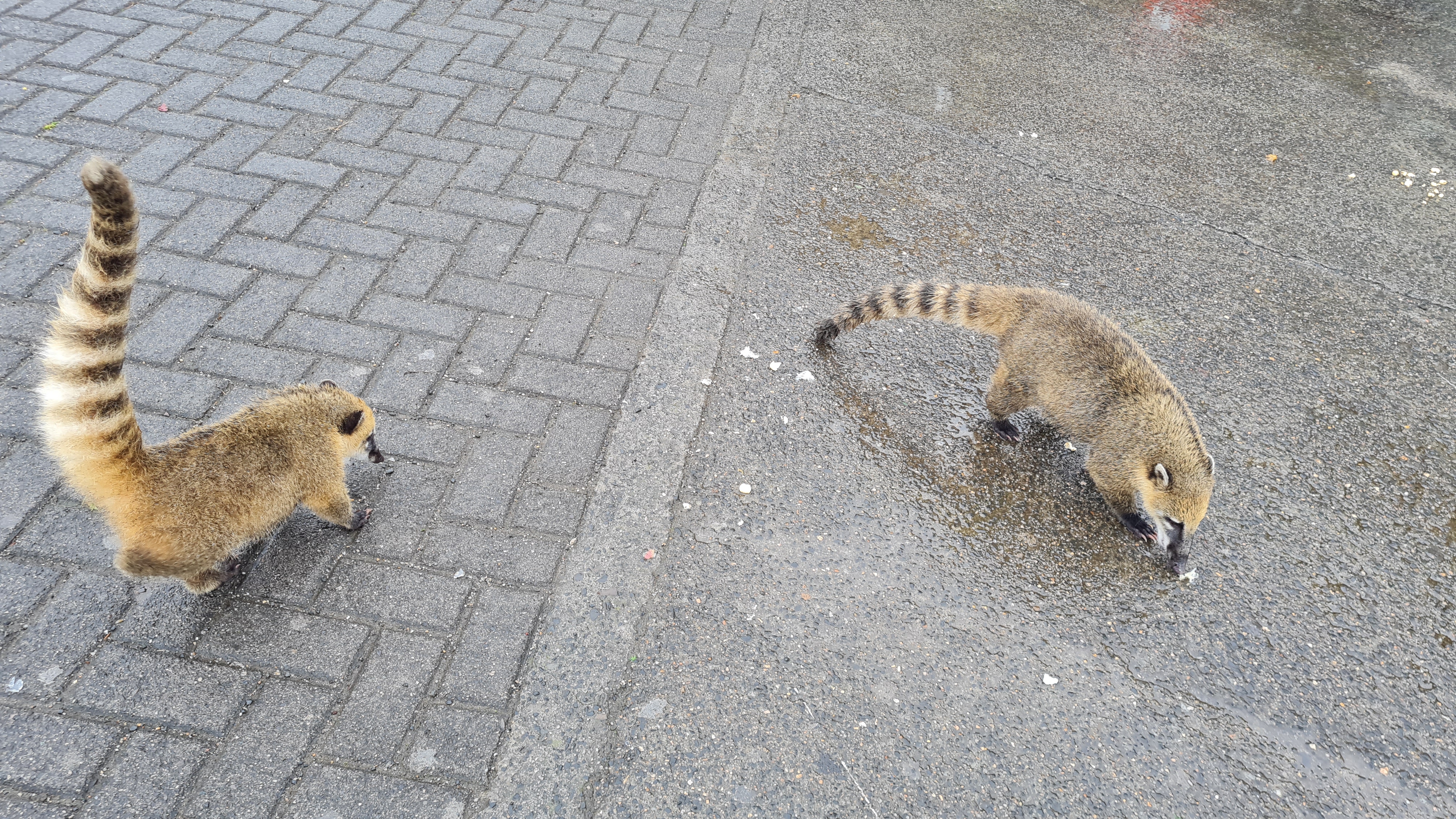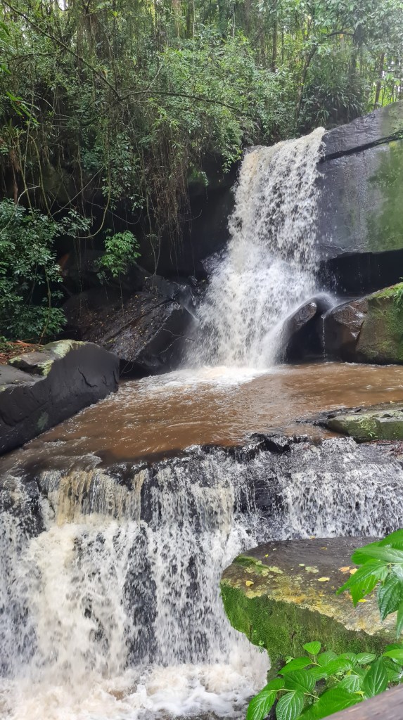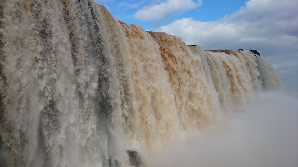 Descemos do ônibus na Trilha das Cataratas, ela tem 1,2 km de extensão em nível fácil, passamos por algumas quedas menores e vários pássaros e quatis até chegar à Garganta do Diabo. É muito importante não mexer ou alimentar os quatis que até parecem animais inofensivos, mas podem morder e machucar. Esta trilha nos rendeu ótimas fotos. No final há uma passarela que nos permitiu chegar perto das cataratas onde nos molhamos bastante, a capa de chuva e proteção para o celular ou máquina fotográfica, caso não sejam a prova d’água são essenciais.
